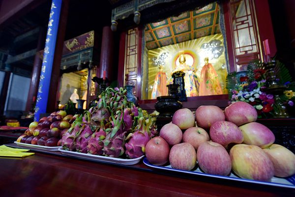 常用香花灯水果五种供养献于神坛之上,称为斋供。对于斋供中的五种供养,各有规定和禁忌。