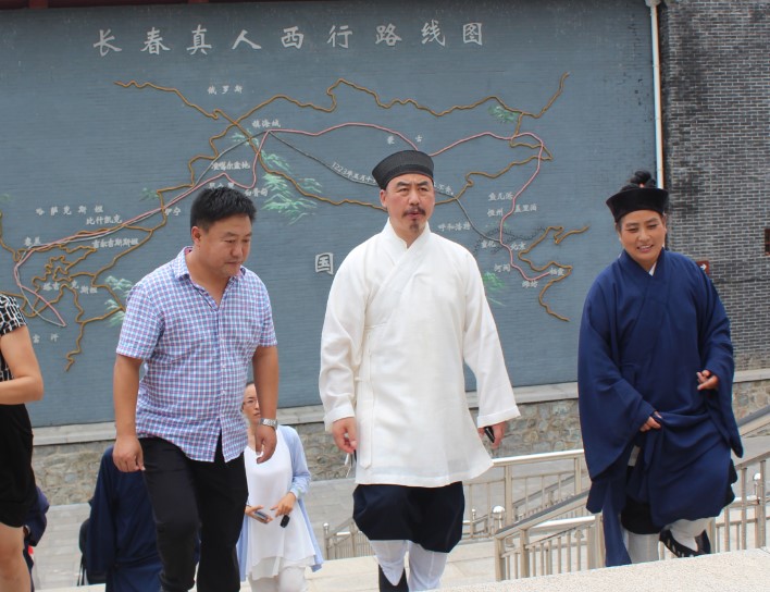 山东栖霞是全真教龙门派创始人丘处机祖师的出生地,道教信仰根基深厚,2016年8月21日上午,张诚达会长到达栖霞“太虚宫”实地拜谒祖师。栖霞市相关领导及太虚宫高鉴道长等全程陪同。