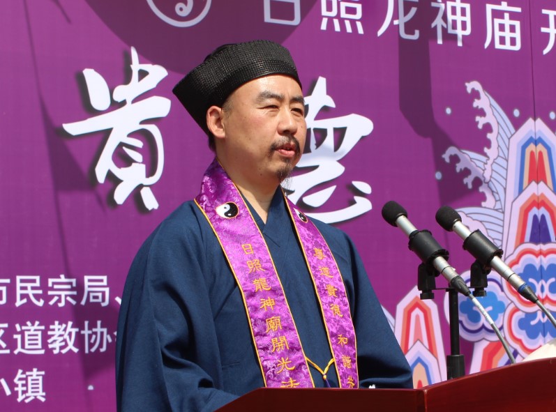 上午九时,开光法会开幕式在龙神庙山门前隆重举行。日照市委统战部副部长、市民宗局局长刘海诚;中国道教协会副会长、山东省道教协会会长、泰山碧霞祠主持张诚达道长;山东省道教协会常务副会长、崂山太清宫方丈李宗贤道长,山东省道教协会副会长兼秘书长尹利举道长,山东省道教协会副会长周枫林道长、刘万弓道长、朱雪梅道长,吉林省道教协会副会长曹常极道长等领导嘉宾、高道大德出席开幕式。