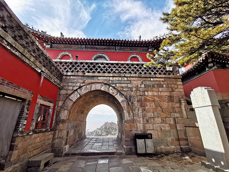 位于碧霞祠前院,钟楼以南为东神门,鼓楼以南为西神门,有盘道穿越两神门其间。西神门与天街相连,东神门与通玉皇顶的盘道相接,两门形式相同,均石砌拱形门洞,高3.4米,宽3.25米,进深5.4米。