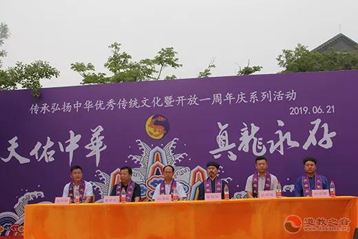 上午9时许举行了盛大的开幕仪式,嘉宾云集、高朋满座。龙神庙住持侯信瑞道长在致辞中为大家讲解了龙神庙的历史渊源。张诚达会长在开幕式上讲话,指出龙是中国的象征,中华民族世世代代关于龙神的信仰是中国传统文化的重要组成部分,也是此次传统文化宣传活动的精神意义所在。同时,肯定了一年来日照龙神庙弘扬道教文化、团结信教群众、服务社会等方面取得的成绩,并对此次传统文化宣传暨开光一周年庆活动的举办表示热烈地祝贺。