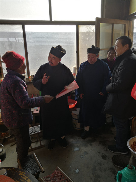 2019124日,腊月十九,己亥新春佳节即将来临之际,泰山碧霞祠组织开展了一次新年走访慰问特困家庭送福到家爱心活动。中国道教协会副会长、山东省道教协会会长、泰山碧霞祠住持张诚达道长率领碧霞祠道众及市道协工作人员,到岱岳区天平办事处和粥店办事处辖区内11个村落社区,走访慰问了30户特困家庭。