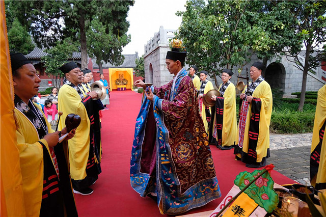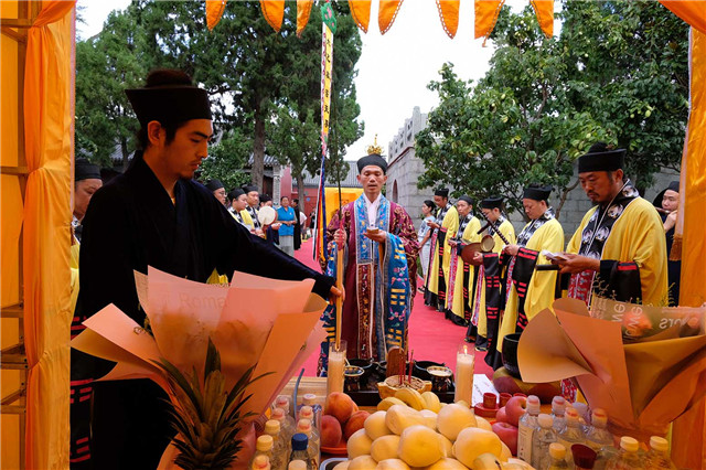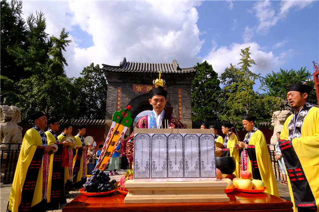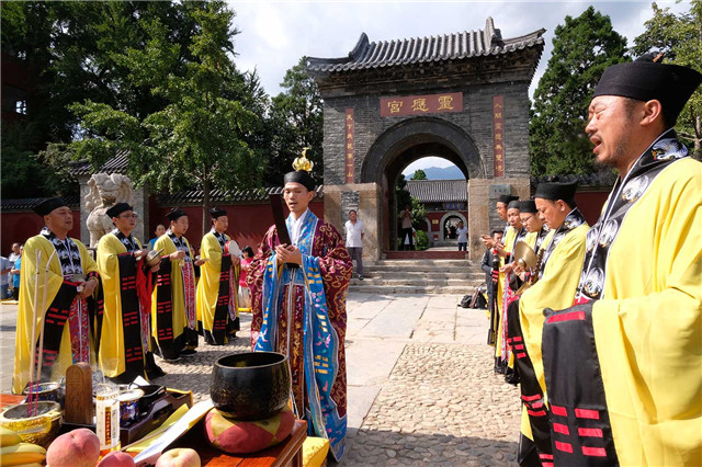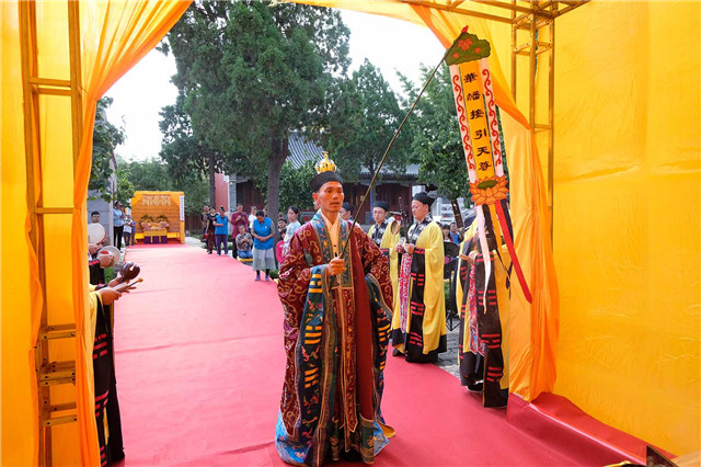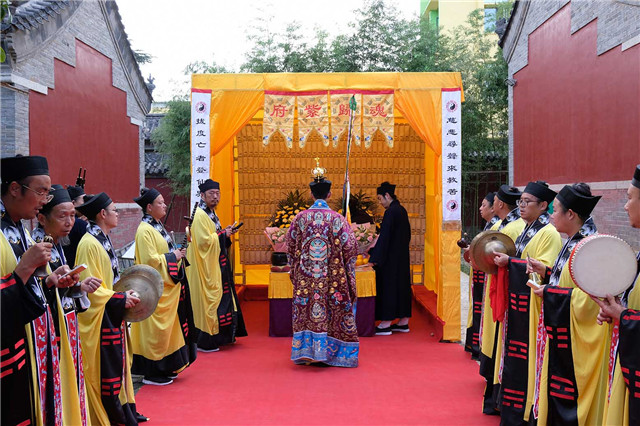 14日下午,按照法会安排,泰山碧霞祠、泰山灵应宫合坛中元节普度法会进行摄召、安灵、济孤诸科。