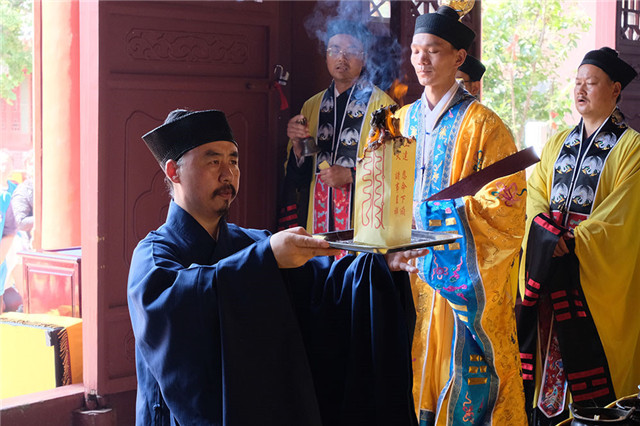 三元午朝科,指在午间朝奉三元时所举行的科仪程式。三元,即“天官、地官、水官”,《太上三官经》云:”天官赐福,地官赦罪,水官解厄”,一切众生皆是天、地、水官统摄。其中,七月十五是地官圣诞之期,也是地官大帝校籍众生罪过之时。