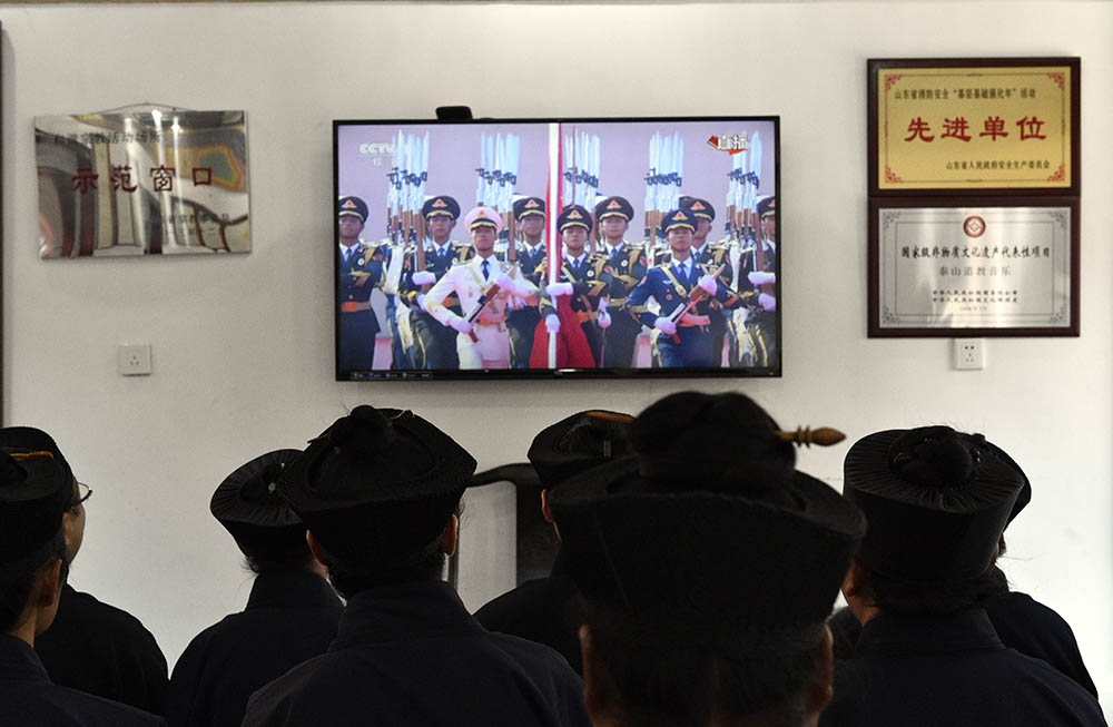 泰山碧霞祠、泰山灵应宫举行国庆升国旗仪式并组织收看阅兵庆典