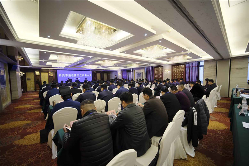 20191212日至13日,泰安道教第三次代表会议在泰安市丽景新天地酒店召开,来自泰安道教界的81名代表参加了会议。中国道教协会副秘书长、山东省道教协会常务副会长李宗贤方丈,山东省道教协会副秘书长宋希勇,泰安市委统战部常务副部长刘卫东、副部长张庆峰、二级调研员张西忠,泰安市社会组织指导中心副主任刘波,泰安市伊斯兰教协会会长丁永峰到会祝贺并出席开幕式。