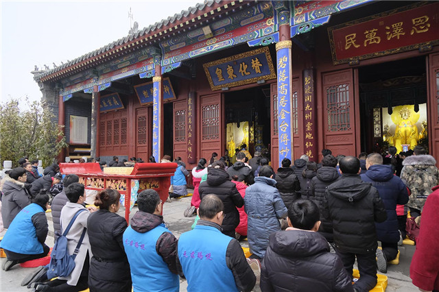 22日上午9时,中国道教协会副会长、山东省道教协会会长、泰山碧霞祠、泰山灵应宫住持张诚达道长率泰山道众,在灵应宫大殿整列朝班,讽经演教,庆贺元始天尊圣诞。