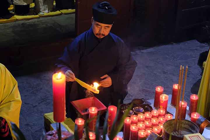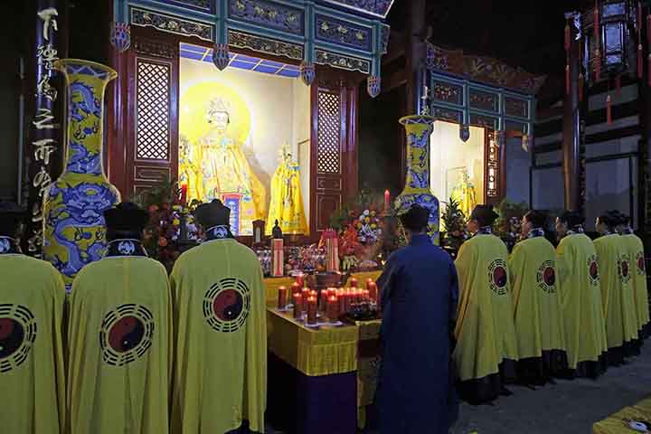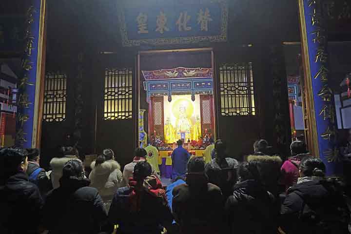 2019年12月22日,冬至元始天尊圣诞,适逢农历己亥年冬月廿七,是道教传统的月斗之日,北斗元君下界巡视,纠录男女善恶,赏罚神人功过。是日晚7时,泰山碧霞祠、泰山灵应宫住持张诚达道长率泰山道众谨按道教传统,在灵应宫举行朝真礼斗法会。