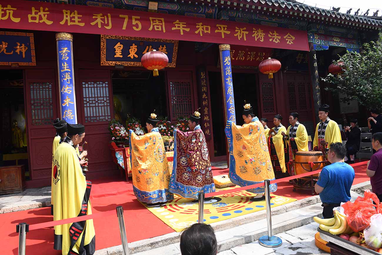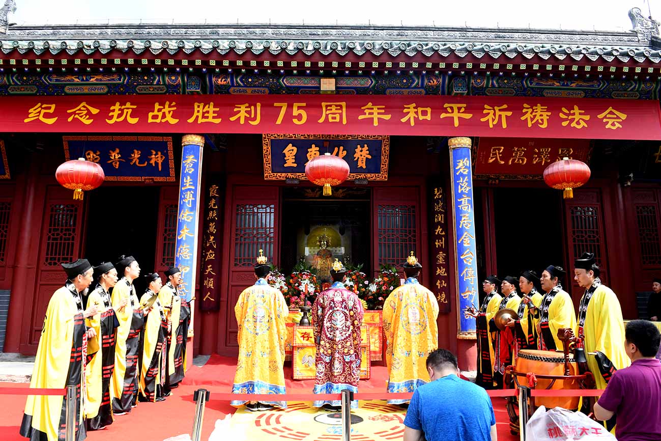2020年8月4日,适逢农历六月十五吉日,泰山道教界纪念中国人民抗日战争暨世界反法西斯战争胜利75周年和平祈祷法会在泰山灵应宫庄严举行。