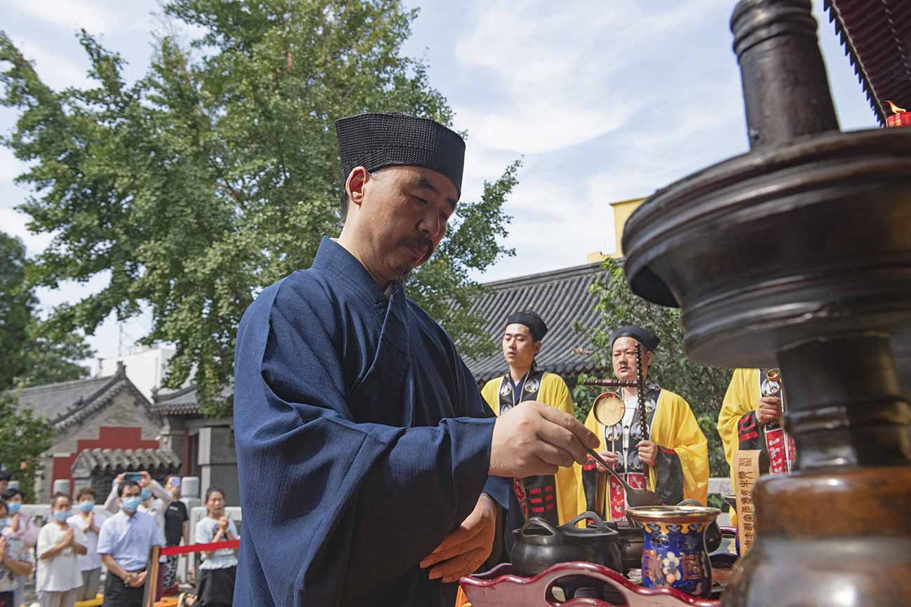 中国道教协会副会长、山东省道教协会会长、泰安市道教协会会长张诚达道长率领两班道众,谨按道教传统拈香诵经,如法如仪,称扬高真宝号,拜进祈福疏文,祈愿上圣高真护佑: