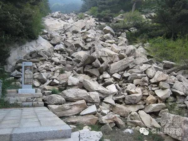 碧霞元君非常着急,就让王灵官去开一条新山道。王灵官手持火雷金鞭来到南天门下,单臂一挥,金鞭一甩,只听“咔嚓--轰隆”石崩山裂,这么大的一座山峰立时出现了一条丈把宽的山口,白花花的巨石,块块大如磨盘,这些石头若用肩抬人运,还不知到哪年哪月才能运完呢?碧霞元君眉头一皱,计上心来,驾起祥云,飘飘悠悠来到天宫,奏请玉皇大帝派兵援助修山道,玉皇大帝当即派了三条巨龙,来到泰山,没半天功夫,就把满山的石头运到了山后。