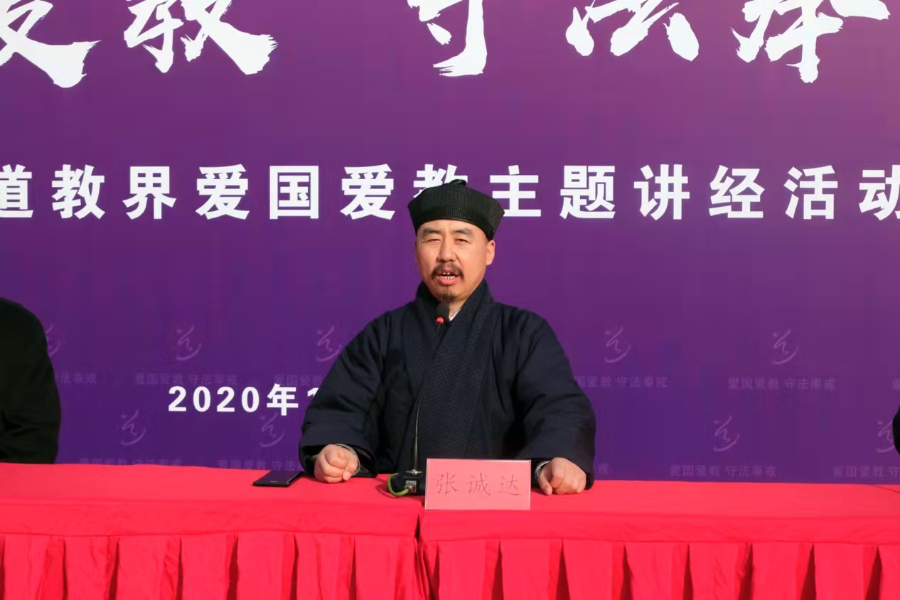 20201124日,泰安市道教协会举行爱国爱教主题讲经活动。市委统战部副部长、一级调研员张庆峰应邀出席,中国道教协会副会长、山东省道教协会会长、泰安市道教协会会长张诚达道长,以及市道协常务理事、讲经道众和部分信众代表50余人参加活动。