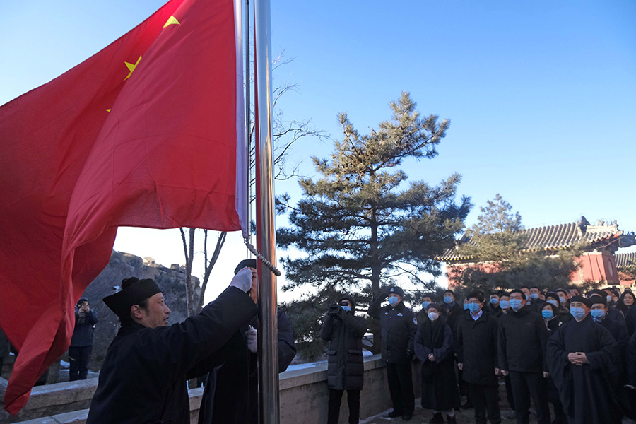 祈福2021 泰山碧霞祠举行元旦祈祷国泰民安活动暨新年升国旗仪式