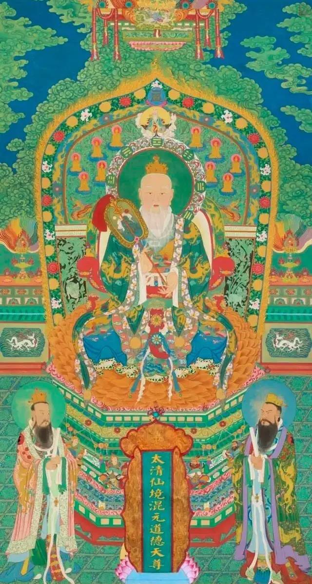 道祖太上老君,又称“太清道德天尊”、“无量度人降生天尊”、“开皇末劫天尊”等,居玉几下三皇洞神太极宫,即大赤天宫。太上老君与元始天尊、灵宝天尊,合称“三清道祖”,或“三洞教主”、“三宝君”等,是道教对信仰之“道”的人格化及对“道性”的诠释,也是道教信仰的最高尊神和无上教主。