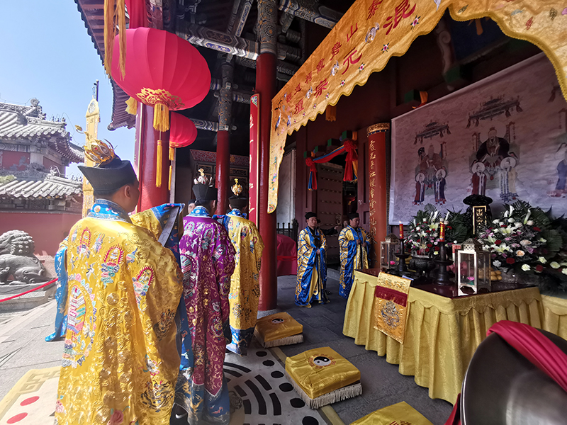 52日,适逢己亥年三月廿八,是泰山神东岳大帝之诞辰。东岳大帝,道教尊称为中界至尊东嶽大生天齐仁聖帝威权自在天尊。是日上午十时,泰山碧霞祠住持张诚达道长率本观道众及十方善信人等,齐集山门,恭设法坛,谨按道教传统讽经演教,焚香进疏,庆祝圣寿,祈福迎祥。