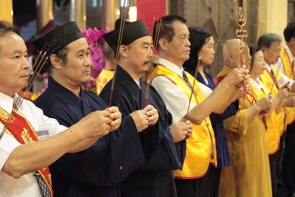 今年的“八八蟠桃圣会”,自9月18日(农历八月初六)开坛启幕,到22日(八月初十)法事周圆,共为期5天。期间,我有幸与中华玄门总会董事长林秋雄先生、玄祯法师一道,共同举行了拜天迎驾、祝寿献礼、金真礼斗、消灾祈福等科仪活动,与广大信众一道,为国为民祈祷祝愿,共祈风调雨顺、国泰民安、社稷祥和。尤其在八月初八这一天,有3万多名各界人士和信众参加了祈福祝寿大典,台湾地区600余个道教宫观到会朝贺,以各自特有的方式和形象登场,真正呈现了万仙来朝的蟠桃寿宴盛况。整个活动规模十分宏大,现场气氛热烈隆重,让人叹为观止。