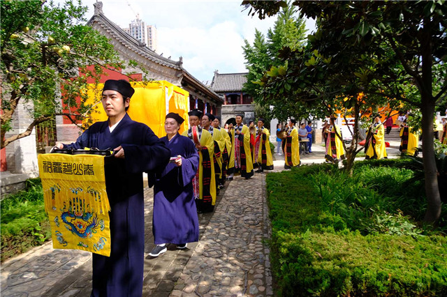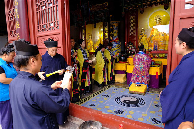 2019年8月14日,农历七月十四,泰山碧霞祠、泰山灵应宫合坛举行的己亥年中元节普度法会在灵应宫道观开坛。