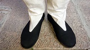 (1)站在拜垫前,双足站立形成外“八”字形,两脚跟相距二至三寸。