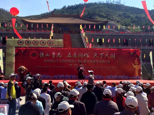 2016910日(农历丙申年八月初十),五岳共祈天下大同——中国北岳恒山三元宫修复竣工盛典暨五岳祈福法会在北岳恒山三元宫隆重举行。来自全国各地的道教界、学术界、媒体界以及社会贤达出席此次活动。中国道教协会副会长,泰山碧霞祠住持张诚达道长出席活动,并代表五岳道教作了致辞。