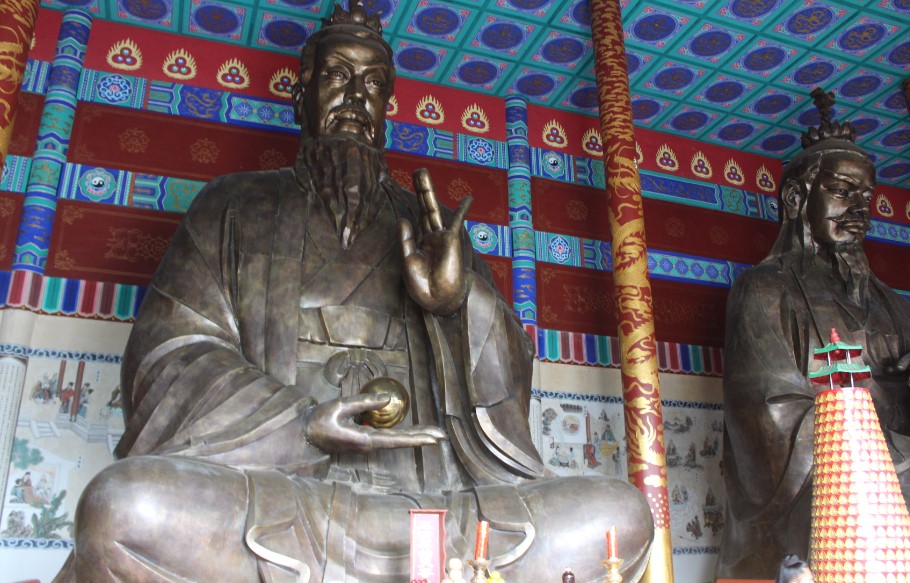 太虚宫的三清殿供奉玉清元始天尊、上清灵宝天尊、太清道德天尊三位尊神。神像总高度9.5米,是目前国内最大的室内三清铜像,宝相庄严,慈悲肃穆。