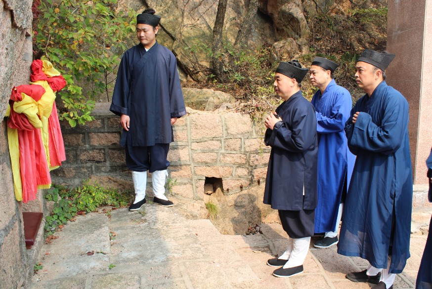 “寻脉全真”旨在不忘祖师立教之初心,继承祖师苦己利人的修行家风,两年来,先后数次出发,行程数千公里,沿着祖师创教弘道路径,陆续探访朝拜了胶东地区众多全真仙迹。唯有王玉阳祖师的道场铁槎山未能成行,20181014日,借参加海峡两岸道教文化研讨会之机,张诚达会长在山东省道协刘万弓副会长、威海市道协孙诚修会长等道众的陪同下,专程前往威海荣成,朝拜了王玉阳祖师的道场铁槎山。