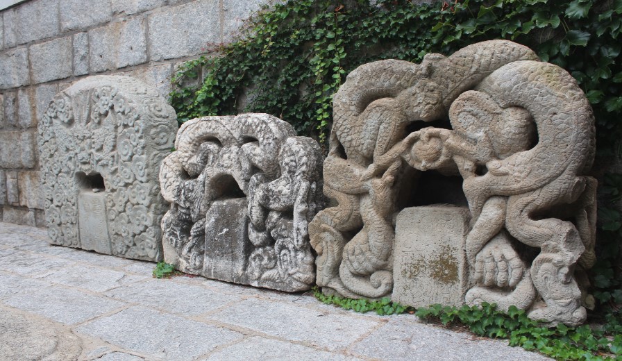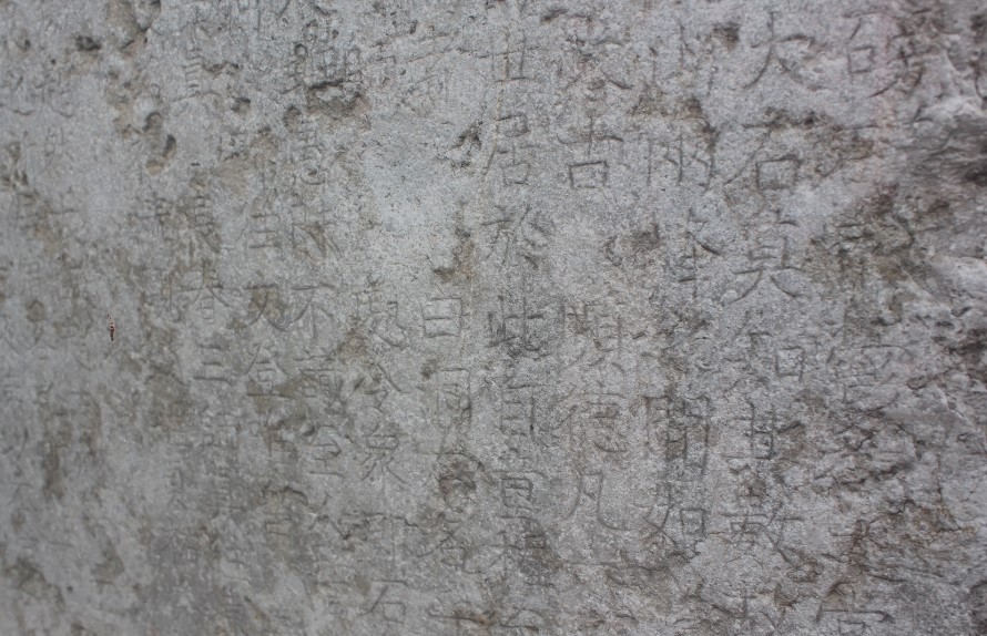 “重修神清宫碑记”碑局部。刻制于元大朝戊午年(1258),记载了王重阳祖师率众弟子上昆嵛山、辟烟霞洞、创全真教的经过和神清宫的兴建始末,极具文物价值,是研究全真教创教初期活动的极为珍贵的历史资料