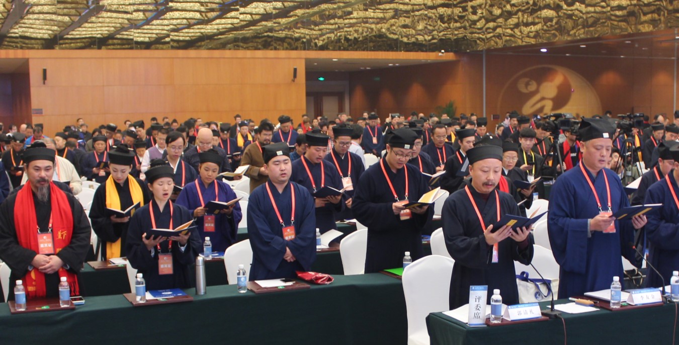 活动开始前,数百位嘉宾在领诵人的带领下,齐声吟诵《唐太古妙应孙真人福寿论》,真人妙语涤荡心扉,三清正气震彻梁宇。