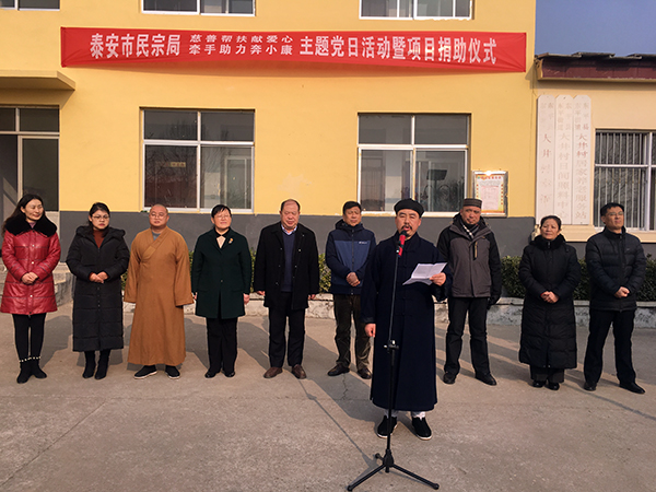 20171228日,泰安市民宗局组织全市五大宗教团体,在省级贫困村东平县大井村举行慈善帮扶献爱心,牵手助力奔小康宗教慈善活动暨大井村光伏发电项目捐助仪式。