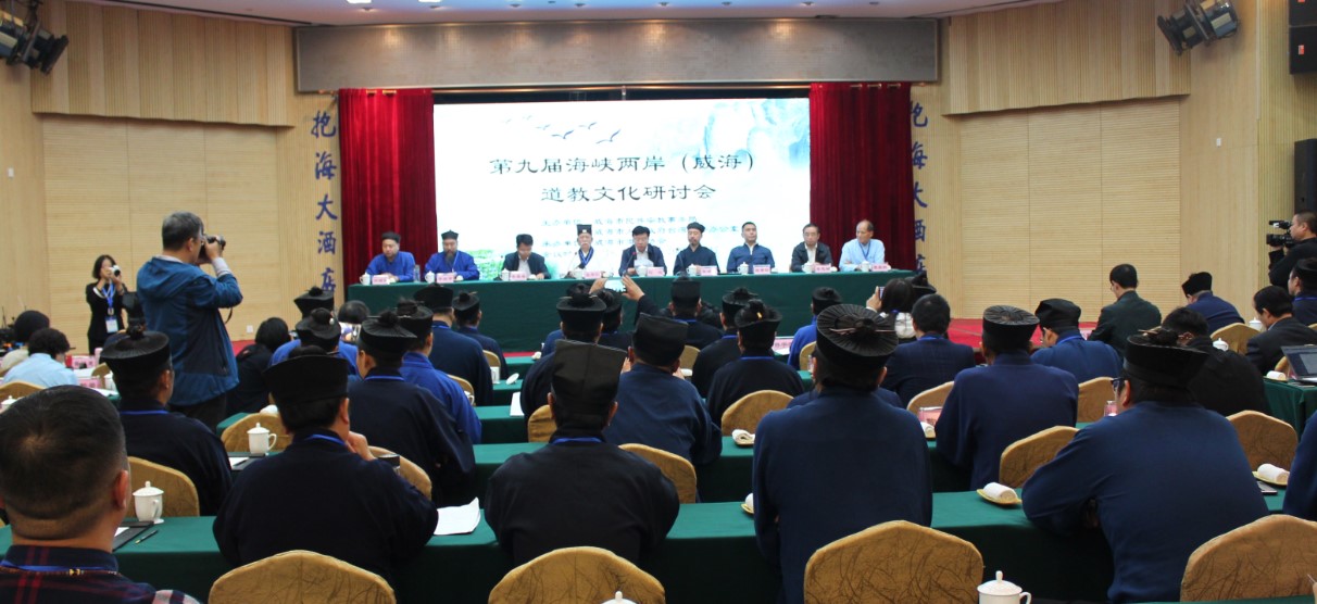 2018年10月13日上午,第九届海峡两岸(威海)道教文化研讨会在山东威海隆重召开。威海市委市政府相关领导到会出席了开幕式,中国道教协会副会长、山东省道教协会会长张诚达道长,山东省道教协会常务副会长、崂山太清宫方丈李宗贤道长,副会长周枫林道长、侯信阳道长、刘万弓道长、孙宇德道长,台湾全真道教会理事长巫平仁道长和台湾省道教会理事长张荣珍率领的台湾道教参访团,以及受邀道教专家学者、山东和台湾两地道教界人士等百余人参加了研讨会。