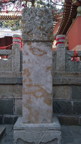 重修泰山碧霞元君祠碑位于碧霞祠东神门内北侧靠东,立于清道光十五年(公元1835)。碑高233厘米,宽67厘米。碑阳文19行,满行59字,凡892字,字径2.5厘米,隶书。碑首高75厘米,宽80厘米,螭首。额篆“圣迹万辉”24字,字径l4.5厘米
