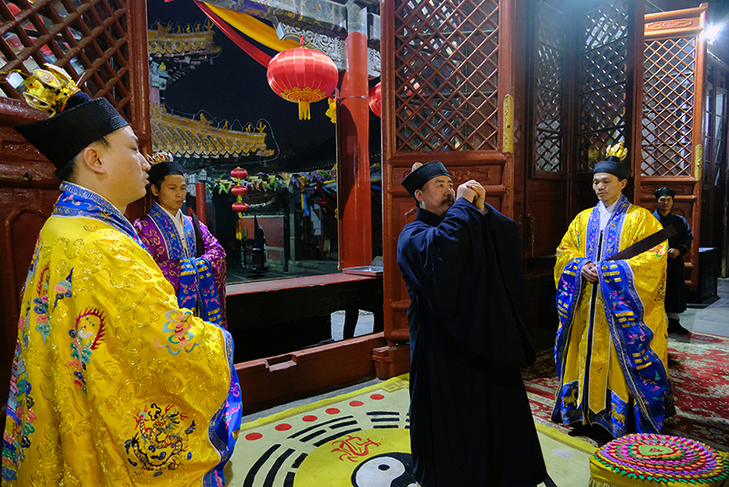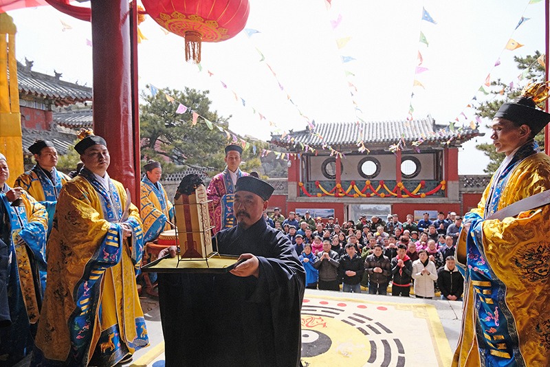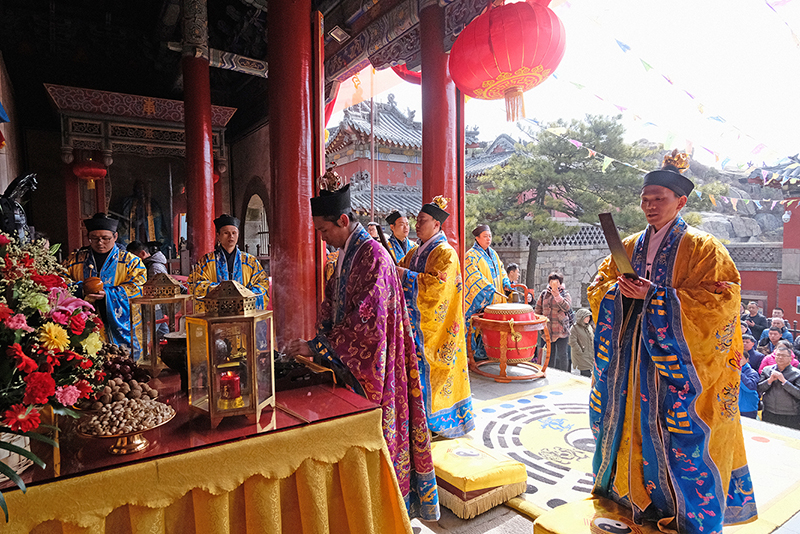 上午十时,吉期良辰,泰山碧霞祠住持张诚达道长率本庙道众,及十方善信人等,齐集碧霞祠山门,恭设法坛,讽经演教,朝礼道祖,庆贺圣诞。