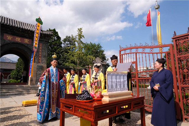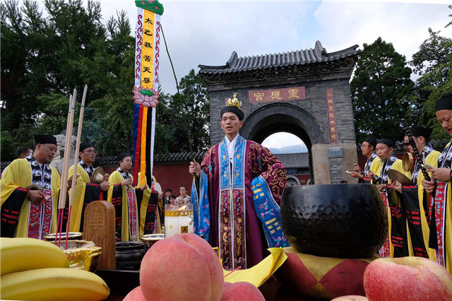 14日下午,按照法会安排,泰山碧霞祠、泰山灵应宫合坛中元节普度法会进行摄召、安灵、济孤诸科。