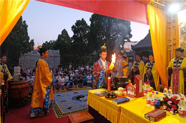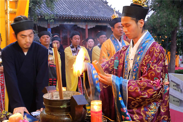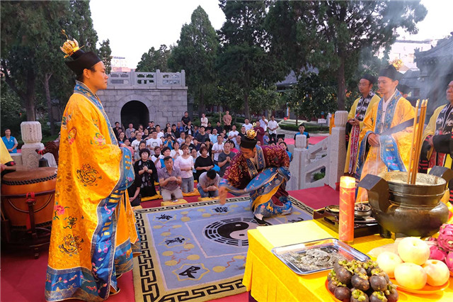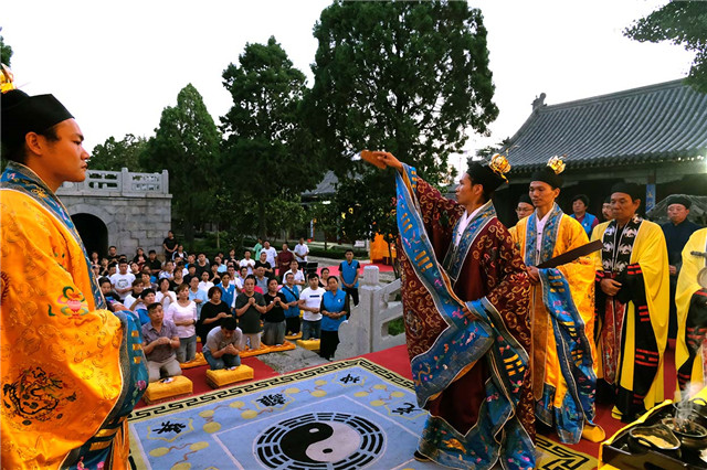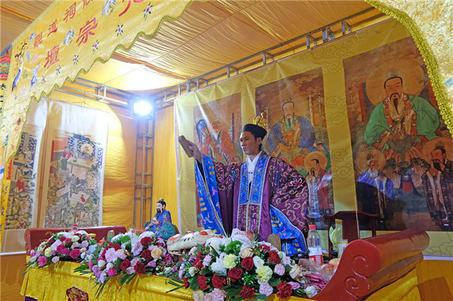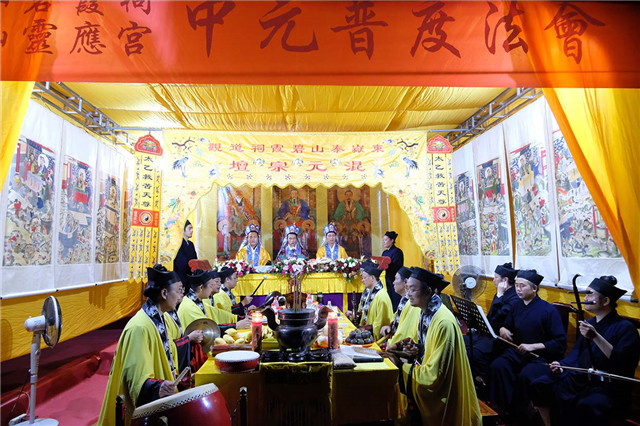 道教的施食科仪来源很早,《道藏》记载甚详,并且流传久远。就现在通行的有《灵宝施食科仪》、《萨祖施食科仪》、《萨祖铁鏆施食科仪》、《沃山焰口》、《关公施食科仪》、《斗姥施食科仪》等等。全真道教一般通用的是《萨祖铁鏆施食科仪》。