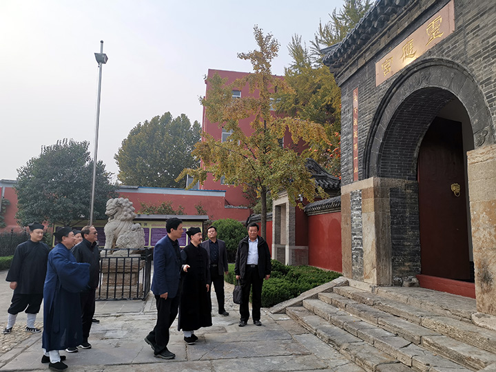 2019116日,山东省民族宗教委主任马传凯一行到泰安市泰山灵应宫调研宗教工作。市委统战部常务副部长刘卫东、二级调研员张西忠陪同调研。
