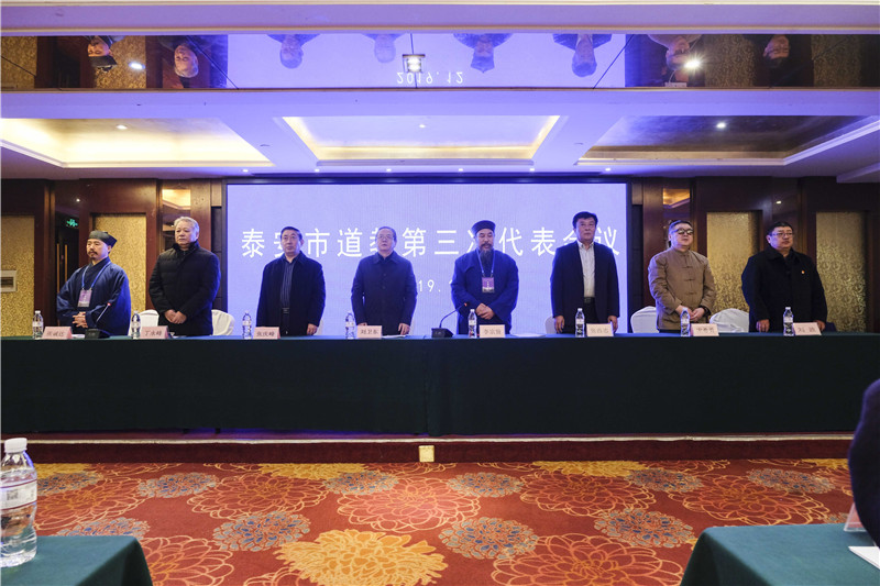 上午9时,泰安市道教第三次代表会议开幕式举行,全体与会人员起身肃立、奏唱国歌。