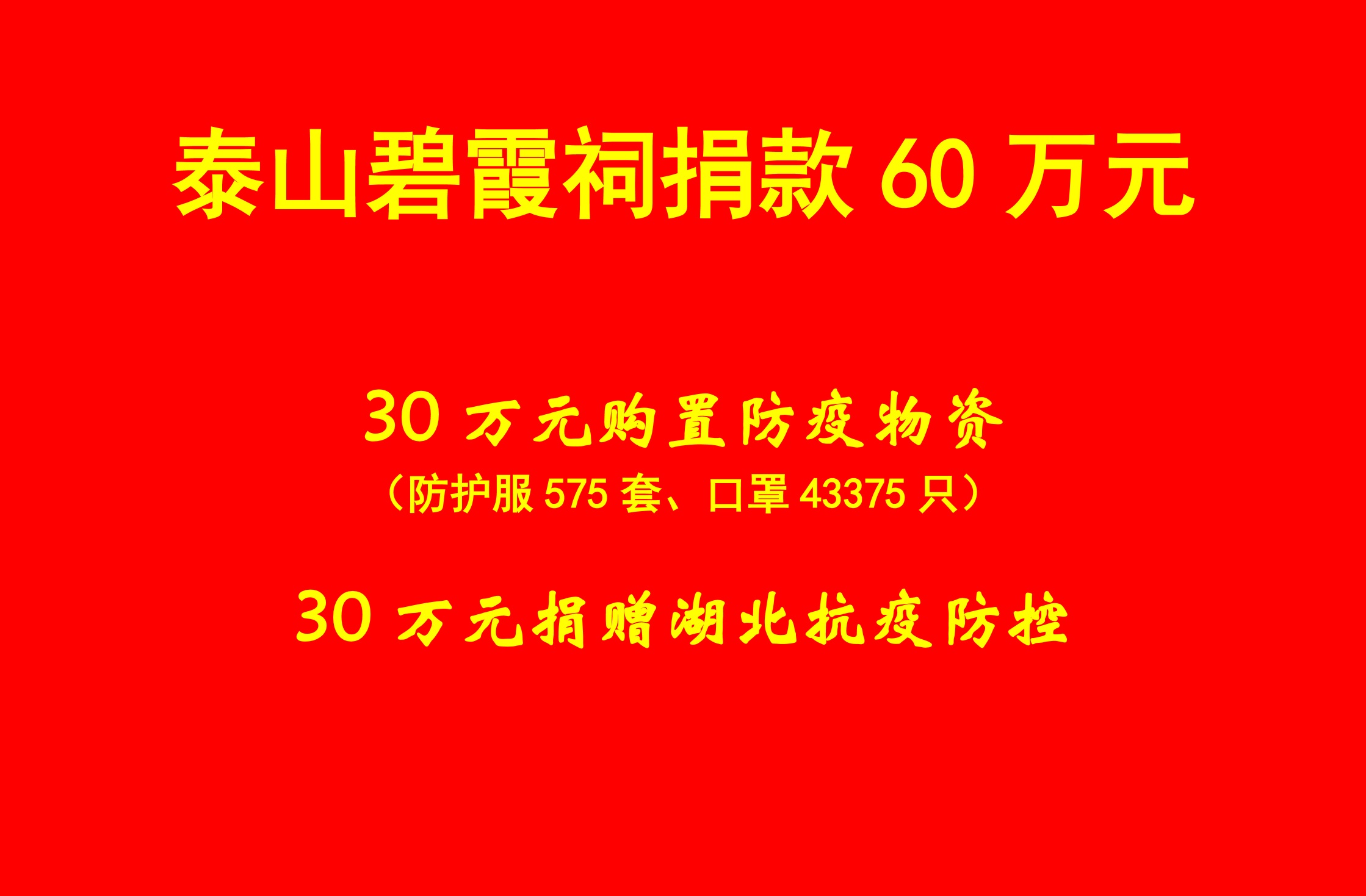 2月24日,为发扬爱国爱教、济世利人的优良传统,继续为抗击疫情贡献道教界应有的力量,泰山碧霞祠再次捐款60万元,以用于当前的疫情防控工作。