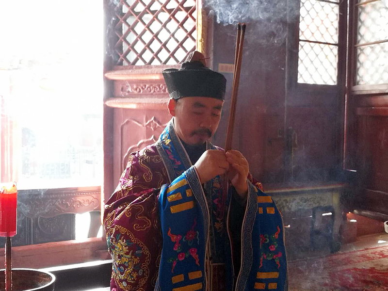 张诚达道长上香祝祷,志心祈愿太上道祖福佑天下,泽被人间。瘟霾消散,尽绝疫疠之侵;百姓康宁,同享清平之乐。社会和谐,百业兴盛;风调雨顺,国泰民安。