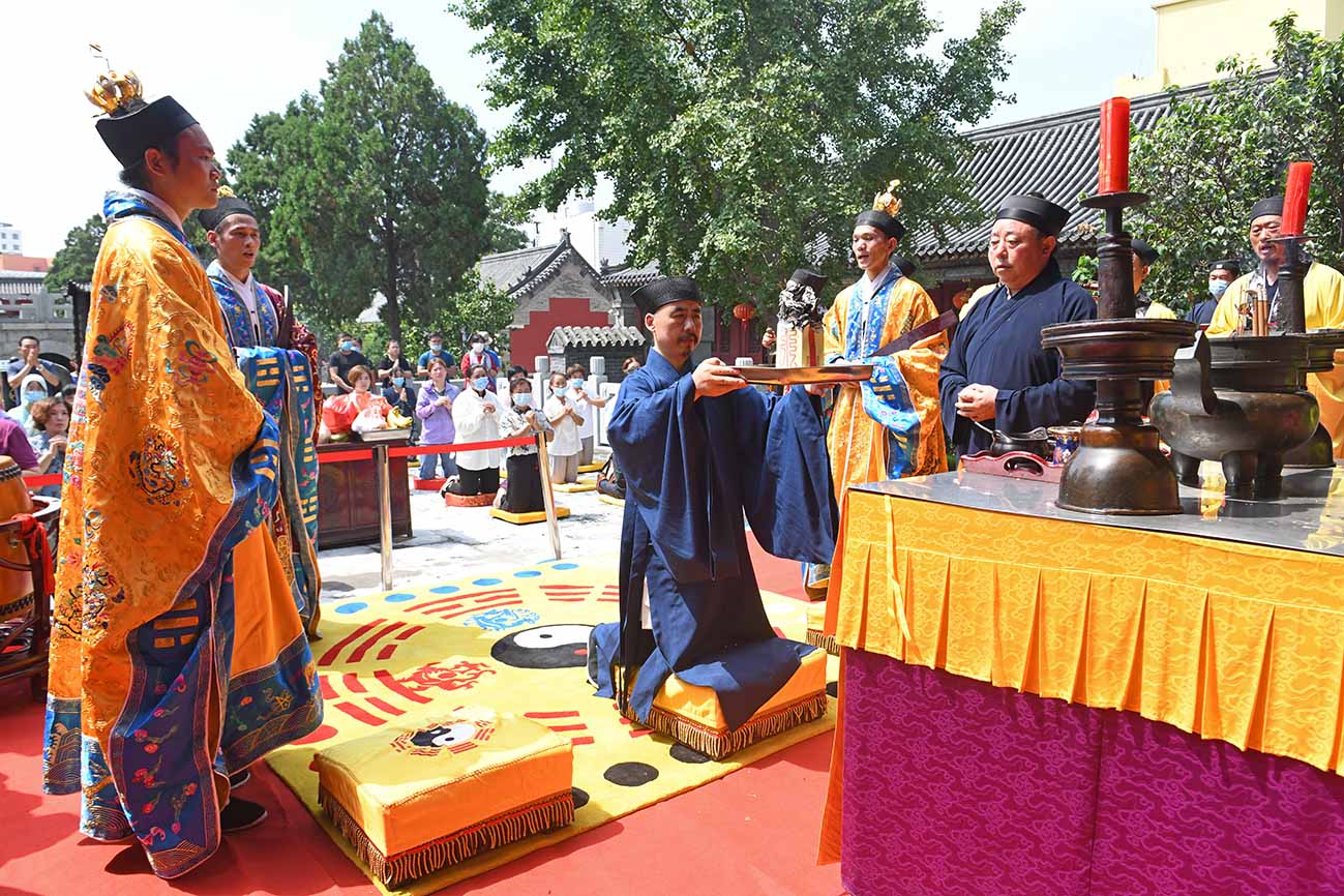 202084日,适逢农历六月十五吉日,泰山道教界纪念中国人民抗日战争暨世界反法西斯战争胜利75周年和平祈祷法会在泰山灵应宫庄严举行。